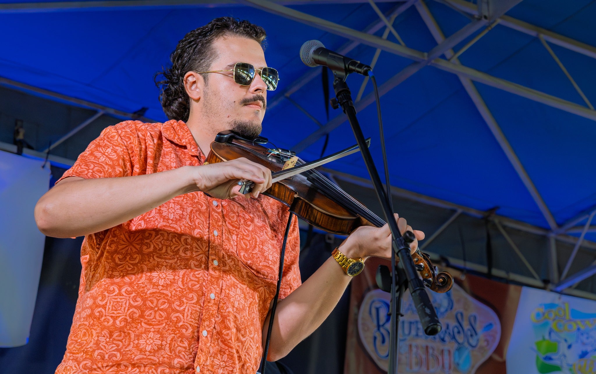 Bringing a touch of South Georgia soul to Monroeville, Skylar Gandy delivers a sound that’s both powerful and unmistakable. His fiddle playing carries a vocal quality that draws listeners in, and his voice has a way of stopping people in their tracks. Whether leading a song or adding texture to the band’s sound, Skylar brings emotion and energy to every performance.Parker Collins